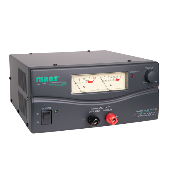 Information for international customers: This series of HIGH POWER SWITCHING MODE DC REGULATED POWER SUPPLIES provide high current 25 amp output in a lightweight and compact size case. They are suitable for a wide range of uses, such as radio equipment, and are ideal for high power car stereo work. In addition to variable output from 3 to 15VDC, a fixed 13.8VDC can be selected. Overload, over temperature, and over voltage protection are standard.