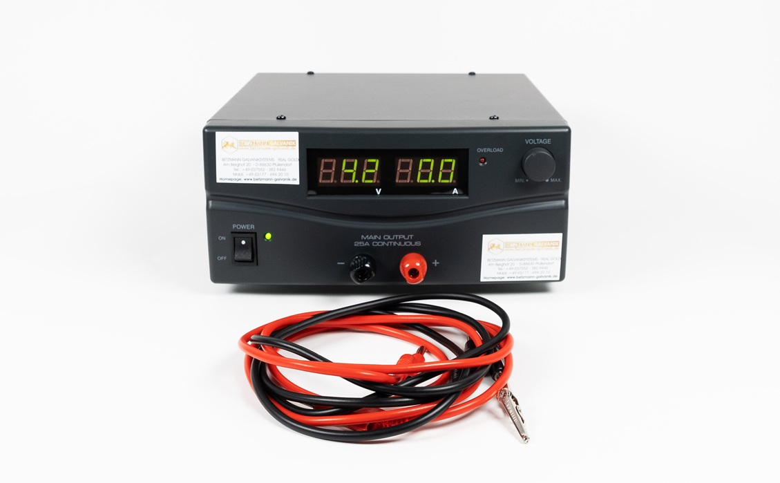 • 1× Galvanikgerät 25 Ampere – regelbar von ca. 2,7 V bis 15 V DC, digitale Anzeige für Strom und Spannung