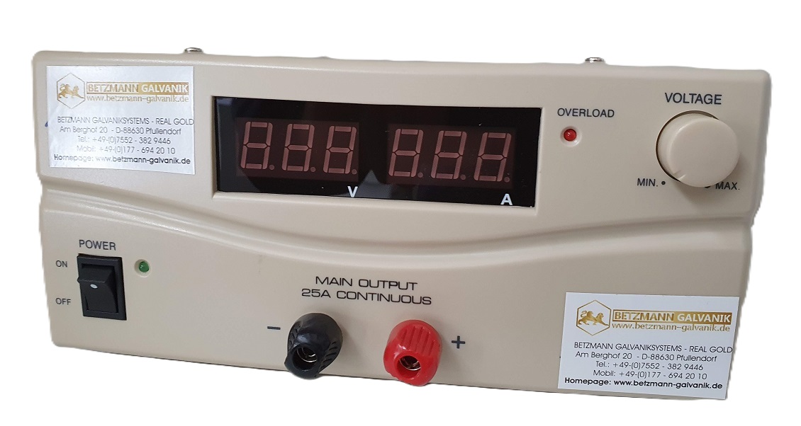 The Galvanic Power Supply 25 A (BMG-25A) is a powerful, electronically regulated power unit designed for electroplating, laboratory experiments and precision coating processes. With a continuous output up to 25 Amps and fine voltage regulation, this supply provides maximum control over electrochemical applications — suitable for hobbyists, workshops, educational labs and professional usage.