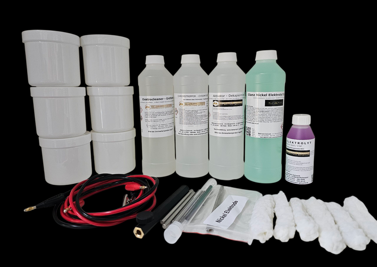 With this electroplating unit you can easily coat all metallic surfaces and objects made of e.g. tin, zinc, brass, copper, nickel, silver and stainless steel and chrome-plated surfaces or chrome-plated plastic (conductive layer) with all metals available on the market. e.g. real gold (999 fine gold) - rose gold, white gold, antique gold - silver - nickel - alkaline or acid copper - chrome - black chrome - rhodium - black rhodium - palladium - platinum - zinc, tin - bronze - in other words everything we have on stock according to our price list.