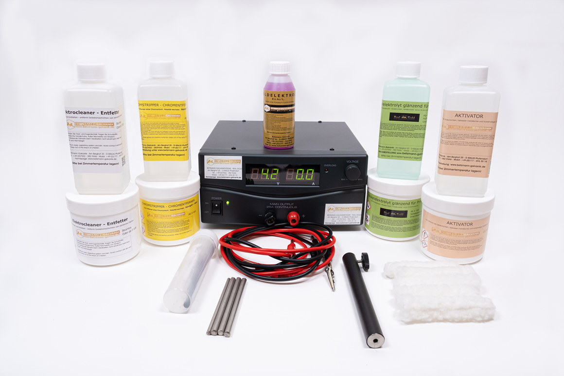 With our small electroplating units - complete sets for gilding or chrome plating you will achieve absolutely perfect results!
